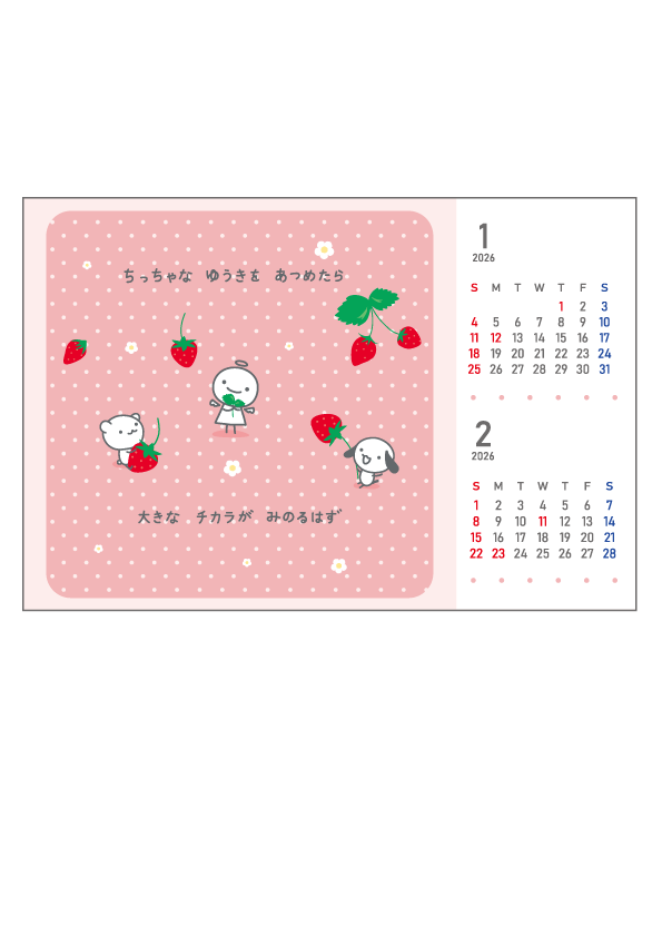 1枚に2ヶ月のカレンダーがついていて、計6枚のセットになります。